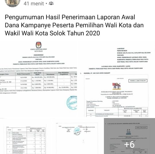 Lintassumbar.id – KPU Kota Solok merilis saldo awal dana kampaye masing-masing calon yang maju pada Pilkada Kota Solok.