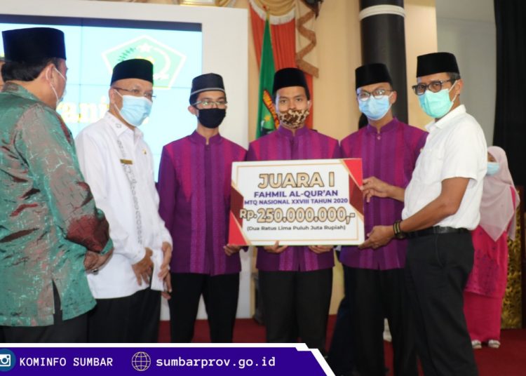 Lintassumbar.id – Gubernur Sumbar Irwan Prayitno berikan bonus kepada kafilah terbaik Sumbar MTQN XXVIII tahun 2020. Pemberian bonus ini sekaligus pembubaran panitia yang digelar di Auditorium Gubernur, Rabu (2/12/2020).